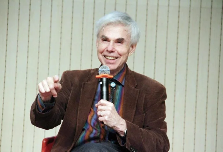 After landing in Indianapolis, I drove a rental car south on Route 37. As I approached Bloomington, the landscape began undulating, sprouting groves and rocky knolls, like premonitions. As I pulled into the driveway behind Hofstadter’s two-story brick home, he emerged from his house to greet me, wearing a topologically and chromatically complicated sweater-jacket. His smile seemed forced, more like a grimace. His head looked too large for the stalk of his body, and he appeared younger and older than his age, boyish and wizened. He peered at me warily from beneath dark eyebrows.