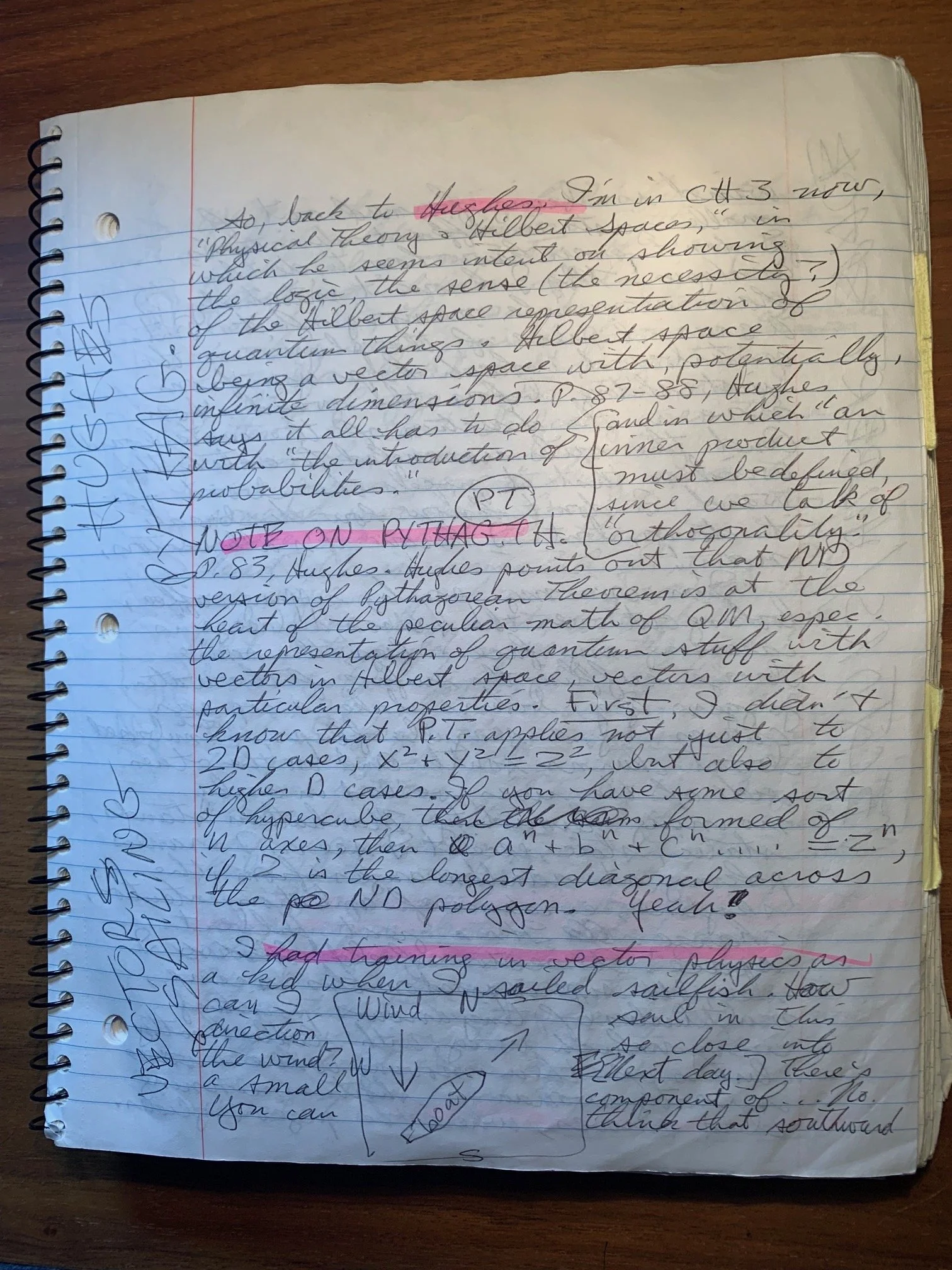 Notes on R.I.G. Hughes and Pythagorean theorem in Quantum Notebook #2, July 24, 2020. I’m also trying to understand sailing in terms of vectors.