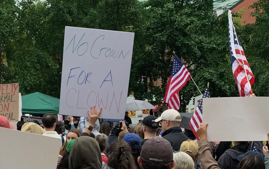 A coalition of progressive groups organized No Kings to protest how Trump and his minions have “defied our courts, deported Americans, disappeared people off the streets, attacked our civil rights, and slashed our services. The corruption has gone too far. No thrones. No crowns. No kings.”
