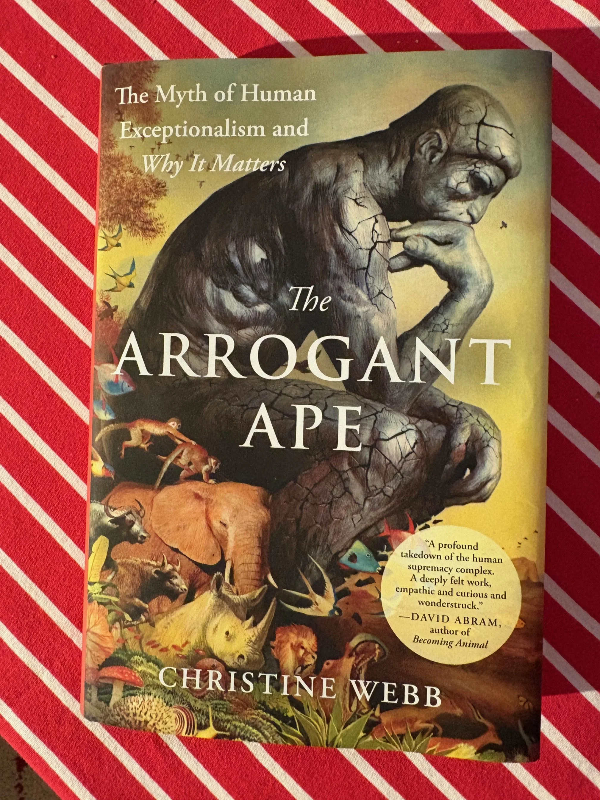 My inspiration is a lecture I heard at NYU last week. Christine Webb, a primatologist, talked about her new book The Arrogant Ape: The Myth of Human Exceptionalism and Why It Matters.